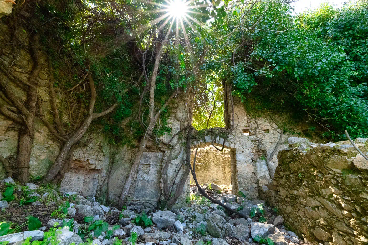 Gourgouthoi is currently uninhabited. The old part of the village, destroyed in 1944, remains in ruins, while some newer houses built after the war are occasionally used as seasonal residences or “metochia” (agricultural dependencies). The village’s landscape is dominated by overgrown vegetation, creating an evocative atmosphere.