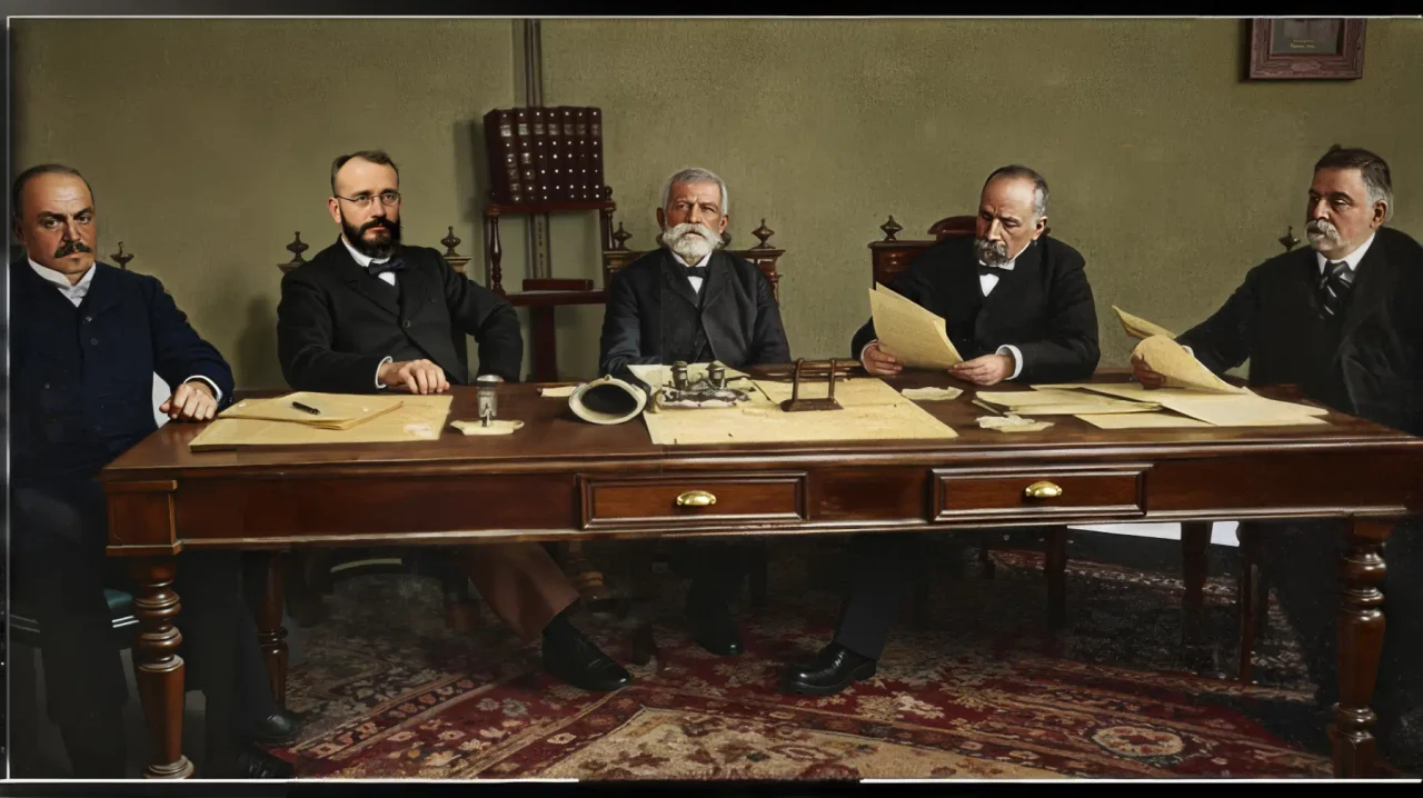 This historical photo shows the first Executive Committee of the autonomous Cretan State in 1898. This five-member committee acted as the provisional government of Crete, managing the island’s administration following the departure of Ottoman forces and prior to the arrival of Prince George of Greece as High Commissioner.